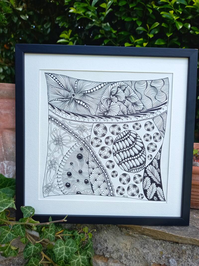 Tusche auf Papier, 21 x 21 cm. Handgefertigtes Einzelstück.